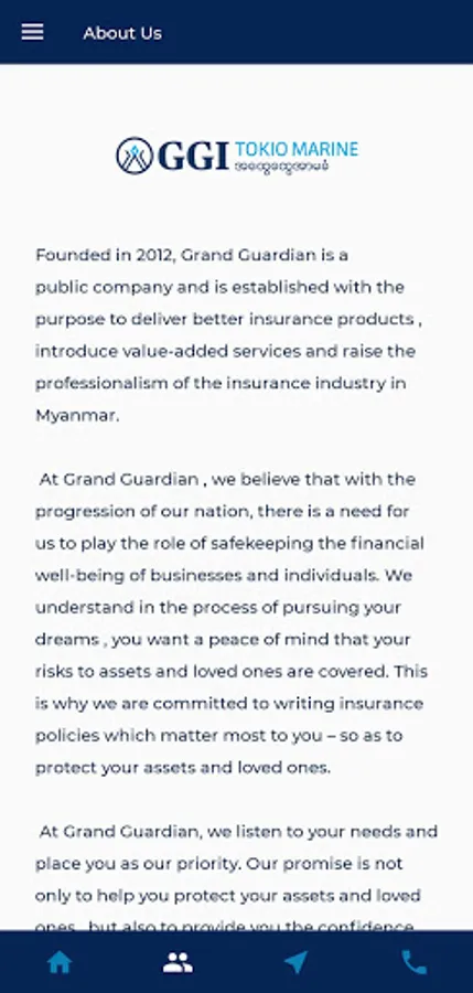 GGI TOKIO MARINE General Insurance mobile app is guided, easy to use tool that helps you buy or calculate premium for your insurance policy at your fingertips. Just input your required product details, select any optional coverage and you will receive a Quick Quote in-app instantaneously! You can send us Claim notification using this app.