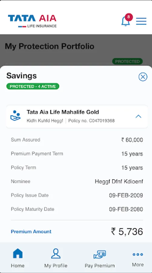 Protection Portfolio view of the insurance policies