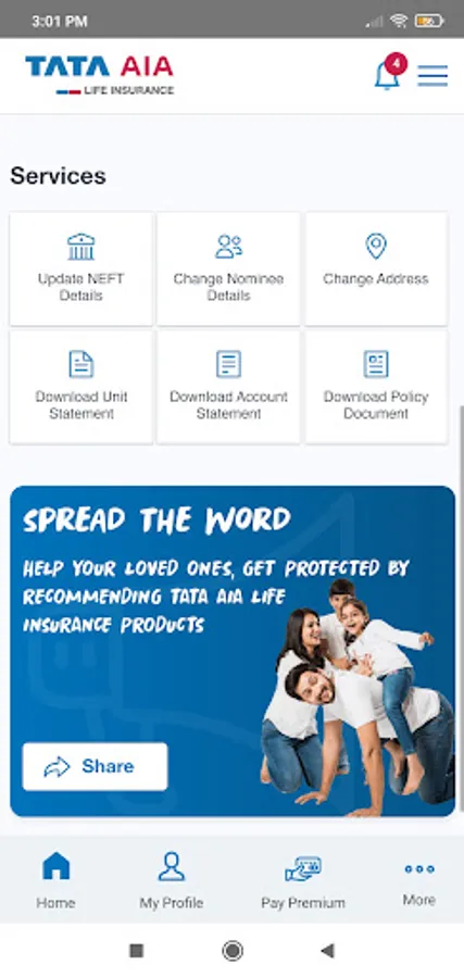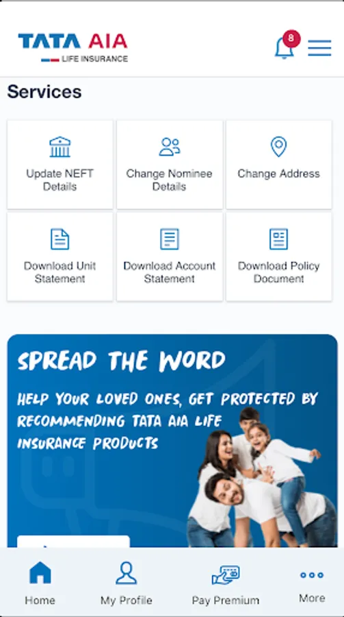 Tata AIA Life Insurance App has been developed by Tata AIA Life Insurance Co Ltd. To server our customers in new age digital ecosystem intuitively. The App provides features to view policy related details, details on other category of insurance policies, perform policy related self-servicing transactions and referral for their friends and family.
