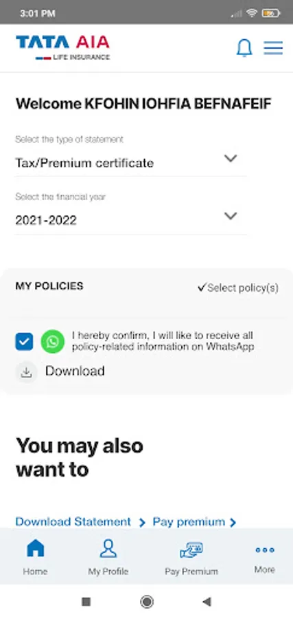 View Premium due date and make premium payment