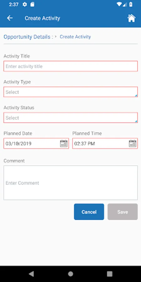 • Activity creation – For every opportunity activity has been created to track status of opportunity.