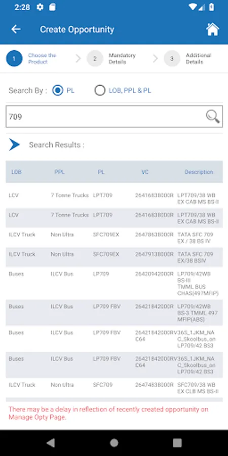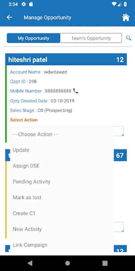 • Opportunity creation – DSM/DSE can create/ update opportunity for each customer and can take all details of customer like contact, account, financier and lead classification details.