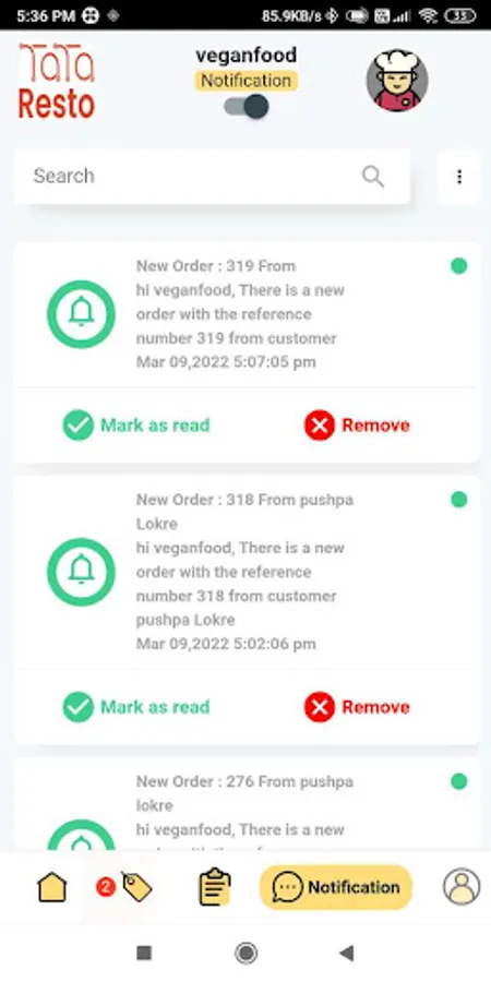 TataFood MerchantApp is an online order taking application that allows merchant to accept or decline order which are placed by the customers.Merchant follows following steps on receiving an order :