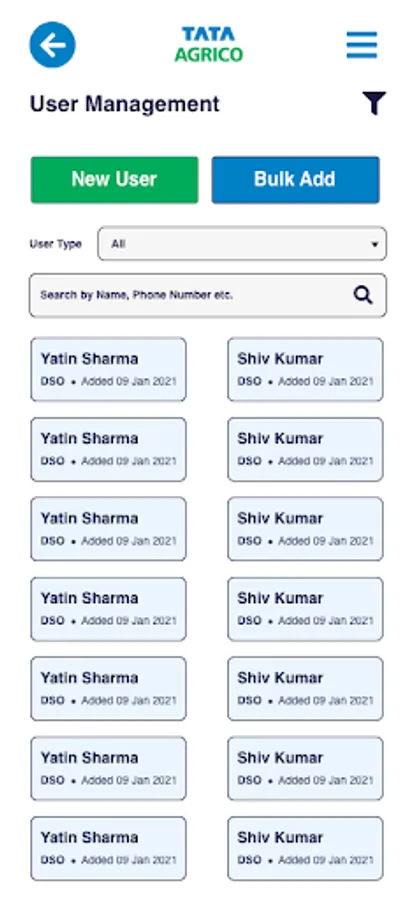 TATA Agrico Saathi is a one-stop tool for all the stakeholders in the Sales & Distribution Value Chain like TSL Sales Managers (RSMs & CAMs), Distributors, Priority Dealers, Distributor Sales Officers (DSOs) & Senior Sales Executives (SSEs). The application will form a key link between the extensive retail channel & the backend teams thereby enabling a more efficient flow of information in the distribution channel. Further, it has been designed to increase the productivity of field sales operations by solving the critical problems and challenges faced by Field Salesforce & Sales managers.