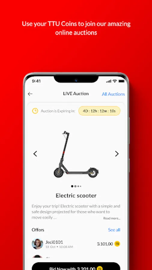 Each day, each week, each month, TaTaTu will offer the community an auction with must-have products (hi-tech, smartphone and coming soon even moto-scooters, and cars) that users can win using just TTU Coins.