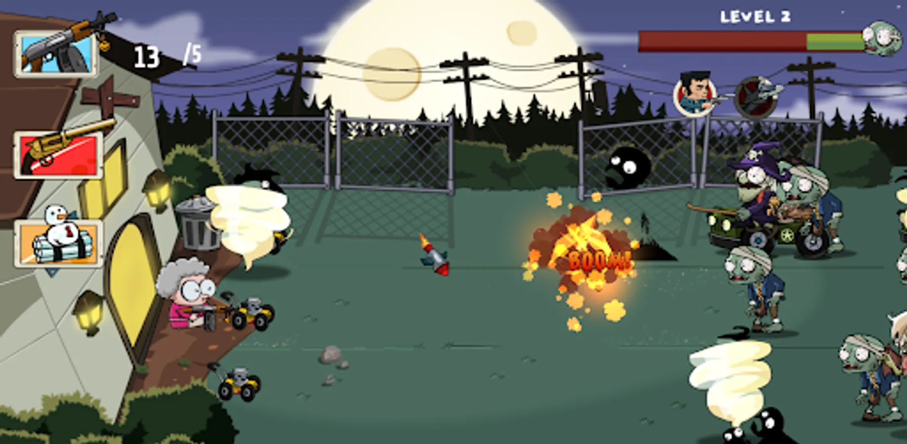 Help Nanay fight those hungry zombies. Collect coins and purchase a variety of weapons in the shop. 30 levels to play and a exciting survival mode to dominate an annihilate zombies.