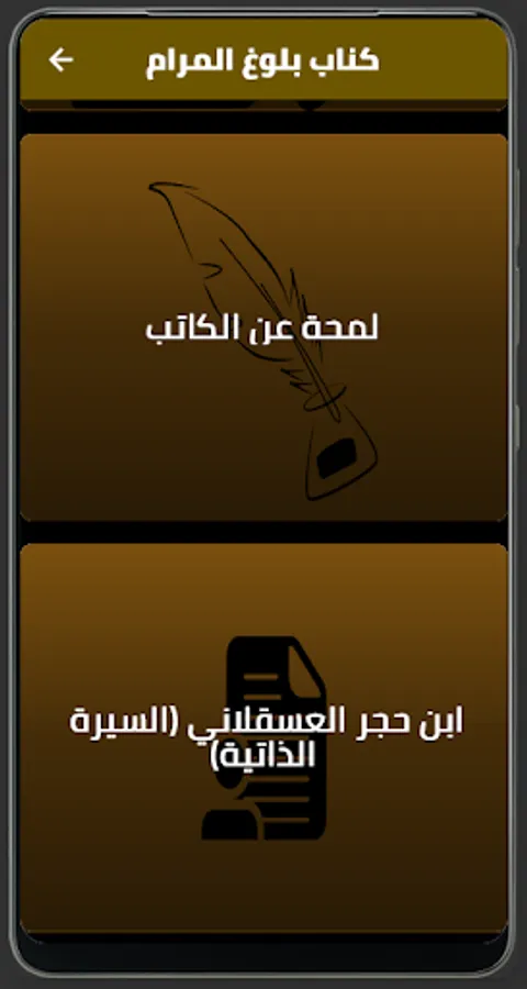 The application of the book Bulugh Al-Maram by Ibn Hajar Al-Asqalani contains the book Bulugh Al-Maram by Ibn Hajar Al-Asqalani, in addition to a glimpse of the book Bulugh Al-Maram by Ibn Hajar Al-Asqalani, in addition to the biography of Ibn Hajar Al-Asqalani