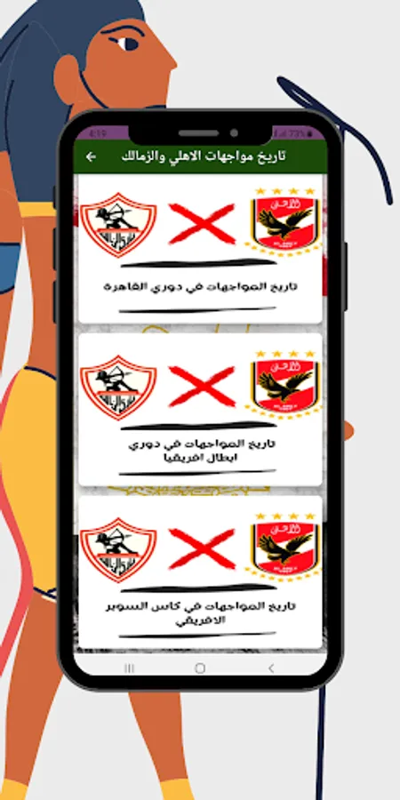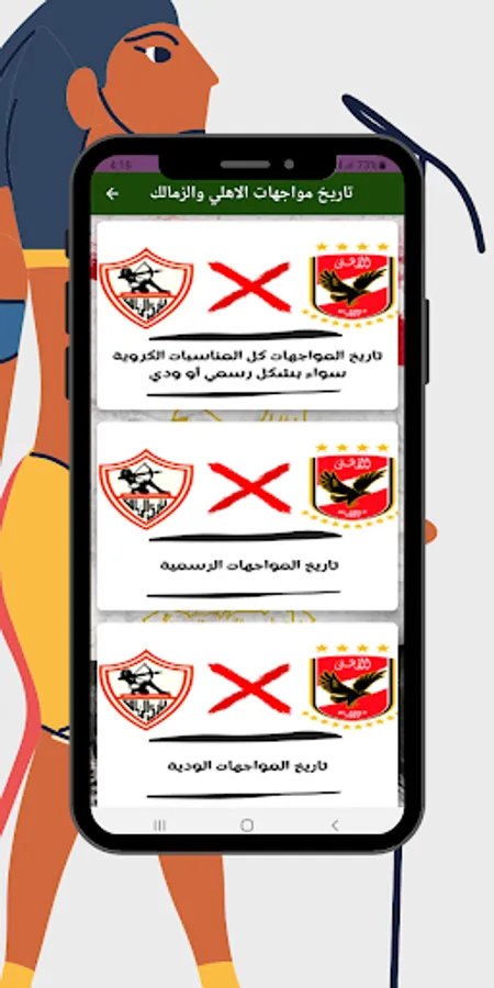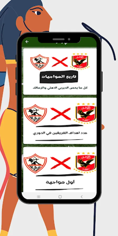 The Android application is the history of the Egyptian Al-Ahly and the Egyptian Zamalek confrontations in the Egyptian Football League, which is considered one of the strongest Arab leagues in football competitions because it has a large selection of stars in Egyptian, Arab and international football