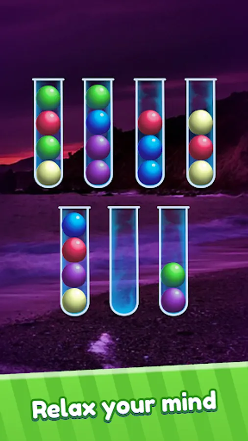 Sort the colored balls in the tubes until all the same colors are placed together in the same tube. A challenging yet relaxing game to exercise your brain! Sorting the colored balls may relieve the stress and distract from daily worries.