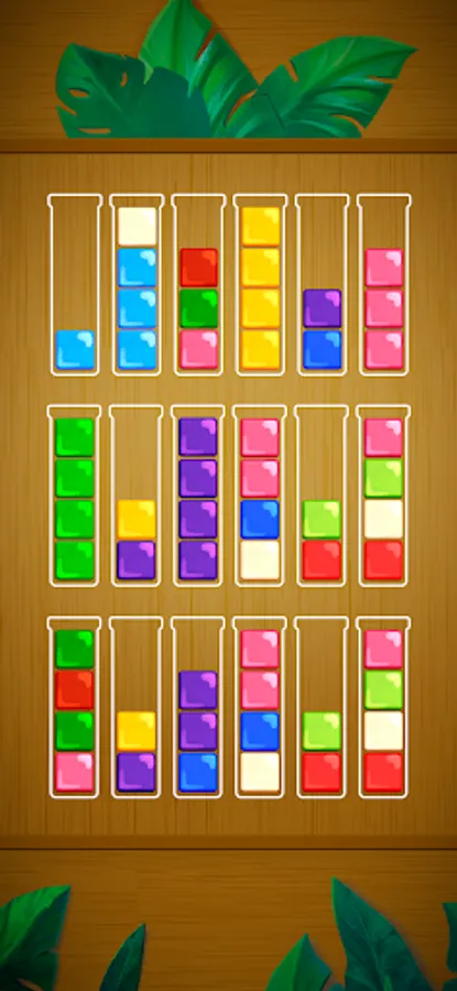 Sort mode: sort falling colored blocks in tubes the way all the same colored blocks will stay in the same tube;