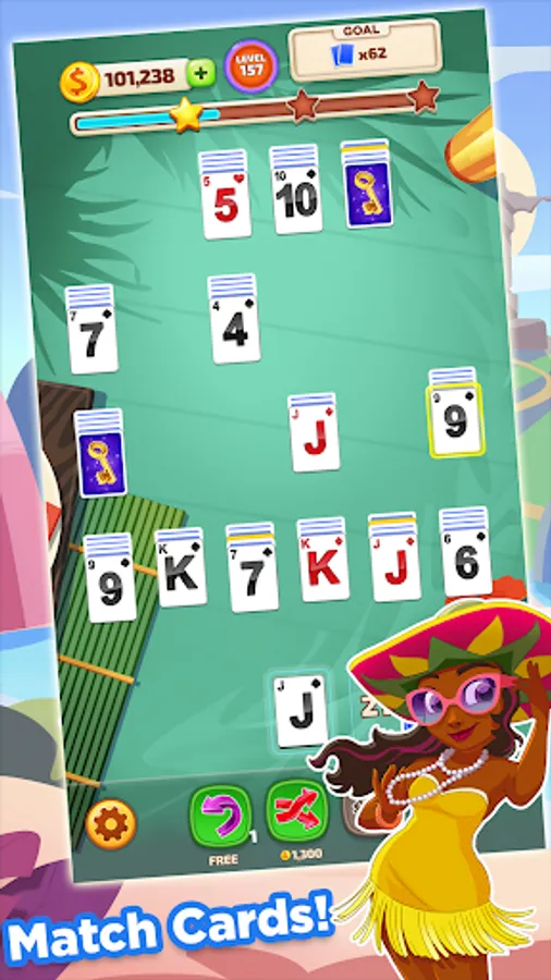 Find the matching cards on the gameboard and connect the pair. Collect and remove all cards to complete the level. Use boosters and become a matching expert level by level. Plus, it's totally free to play!