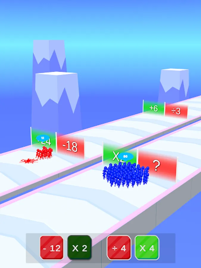 Launch people onto multiplier gates to increase your crowd and capture all the bases! Avoid the red gates and push back the red crowd, trying to ruin your fun!