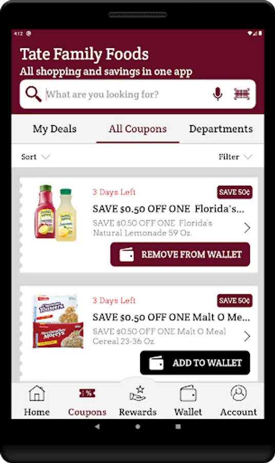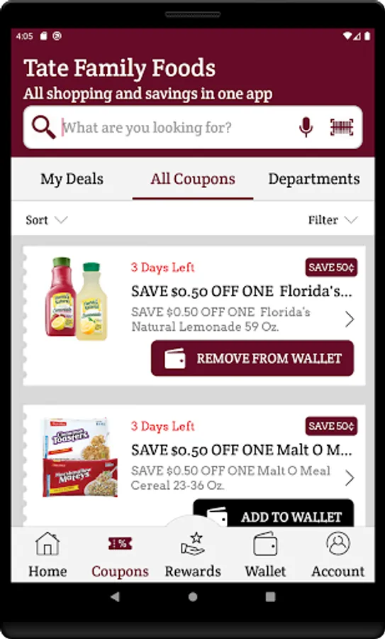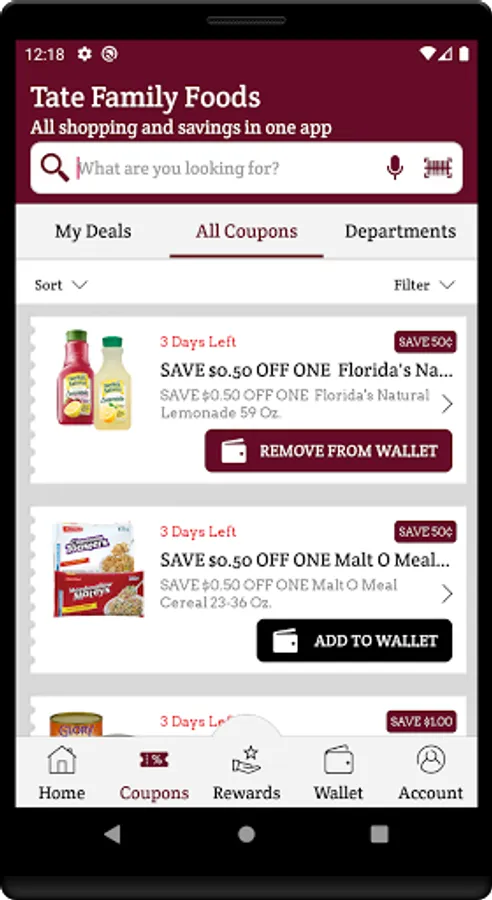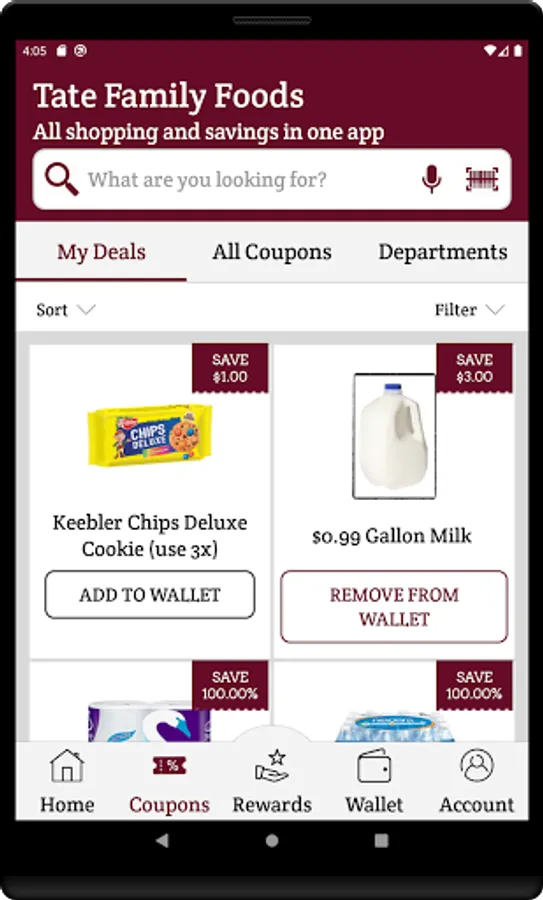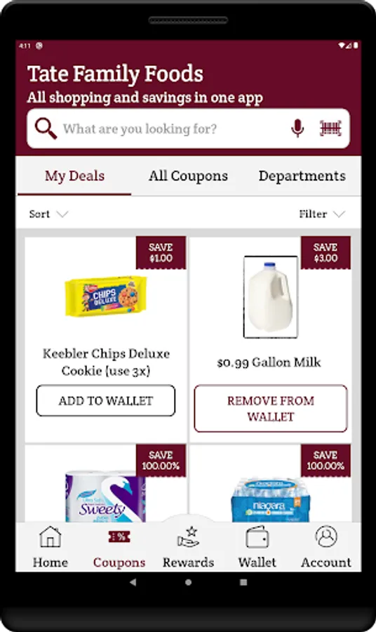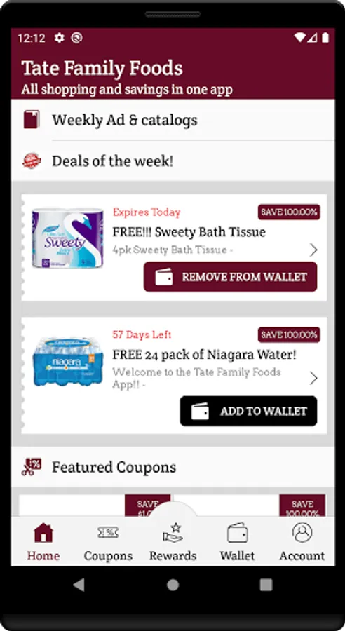 Claim as many coupons as you want with one simple scan! No more searching through mailers or printing out emails, Tate Family Foods is bringing rewards right to your mobile device!