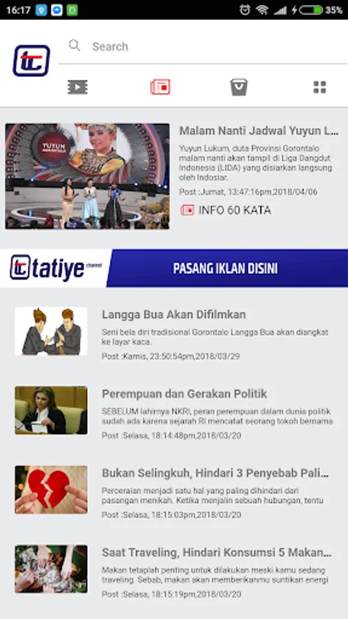 1. Keep up to date with various video and other exciting programs around the Gorontalo.