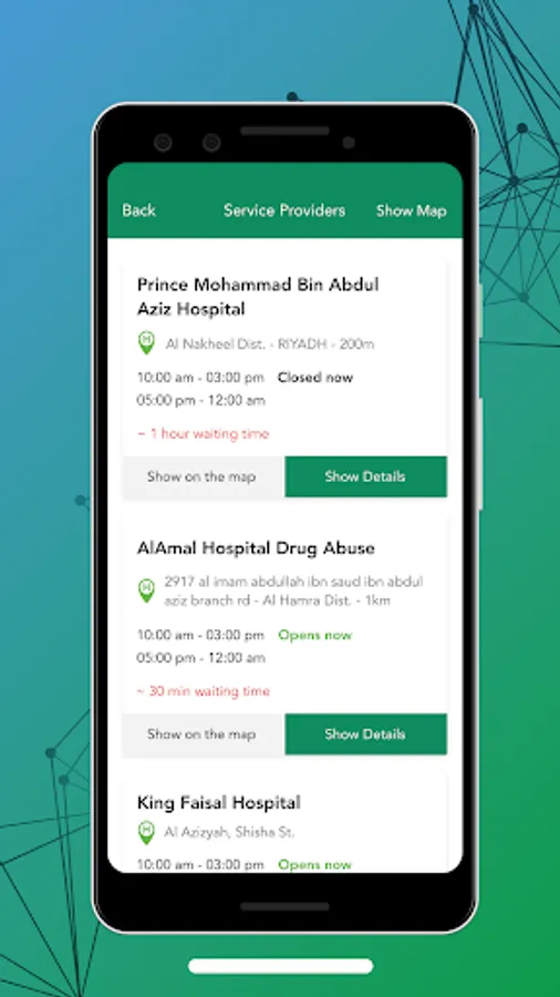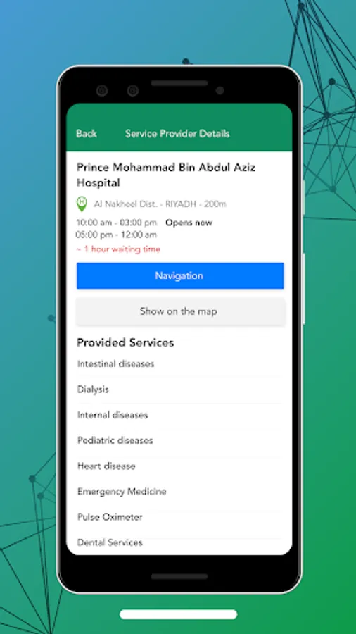 The application also provides on-map navigation to facilitate reaching the location of the healthcare center or hospital.