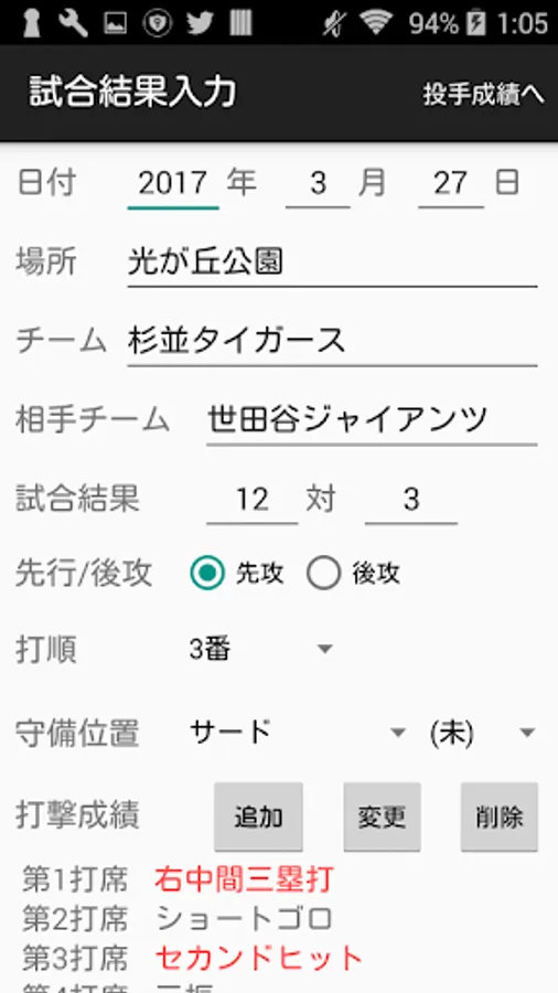 ・チームの成績を記録するアプリは多くありますが、このアプリは個人成績の記録に特化しています。