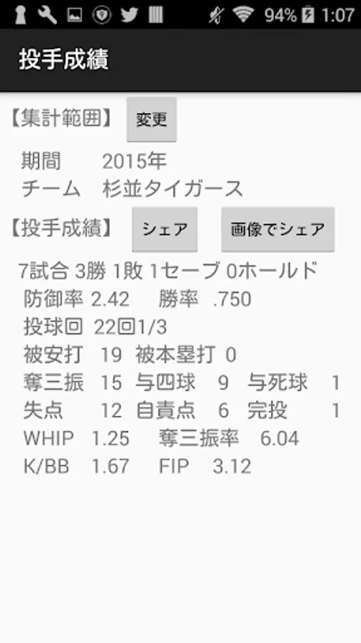 ・集計の際、期間やチームを絞れるので、最近5試合の打率、2016年のみの防御率、特定のチームで出場したときの勝率なども簡単に計算できます。