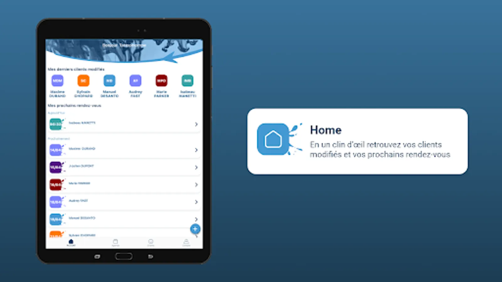 - Agenda, client and appointment management: Get a clear view of your week with our intuitive color-coding system that immediately shows your workload. Easily manage your customers and their appointments. Change, reschedule or cancel appointments in the blink of an eye.
