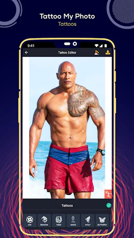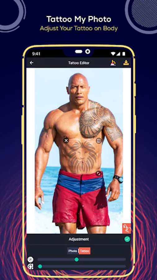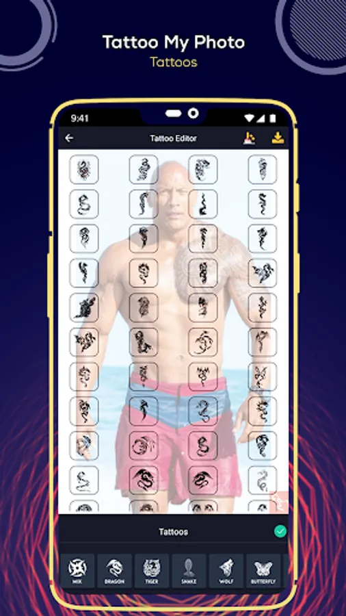 Tattoo my photo editor app lets you try new tattoo for girls & men, without any pain! Henna Tattoo yourself on your own photos. Just choose a photo from gallery or take one using camera and than you are able o tattooed your photo.