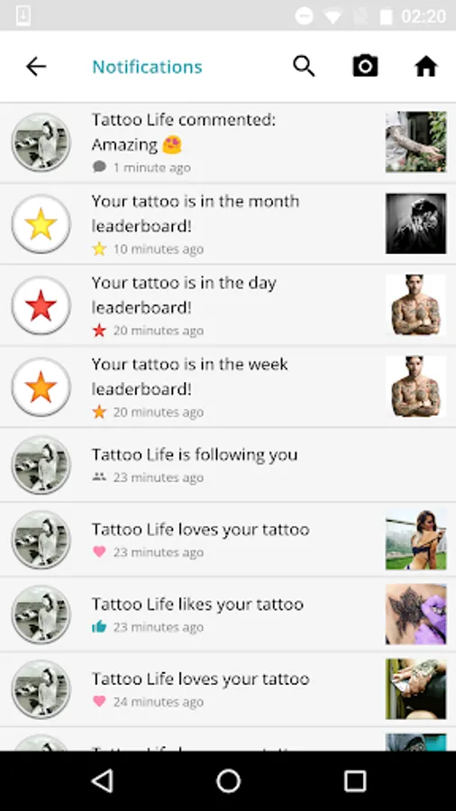 Discover new beautiful tattoos all around the world and upload yours! Follow users and rate each tattoo as desired. You can check leaderboards to see the top rated tattoos of the day, week and month always updated!
