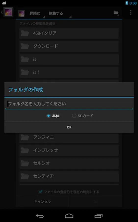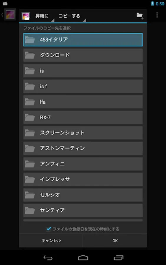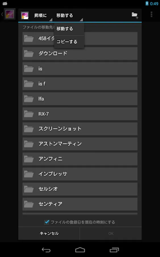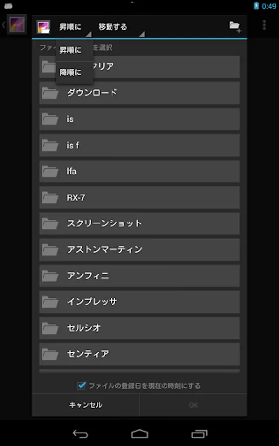 If you want to come your file to the top, please to leaving the check "update the file registered date" on app bottom. If more than one move, you can in ascending or descending order of the file name, and change the order of registration.