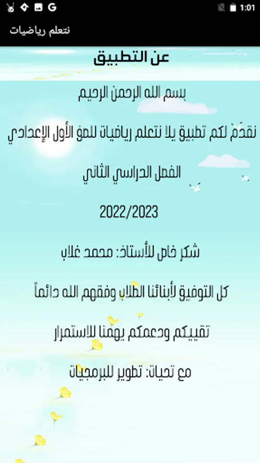 We offer, however, the Let's Learn Mathematics application for the first grade of middle school