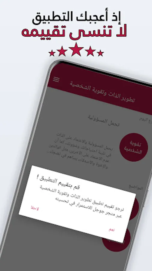 We offer you this free application that keeps you from wasting your precious time in searching various forums and sites, most of which are without result, so we specially made an application for you that helps you learn how to develop self, how to strengthen personality, and ways to enhance self-confidence