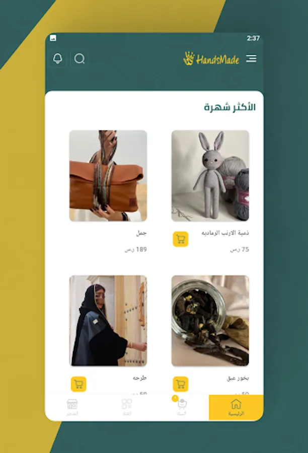 A Saudi platform that brings together craftsman in their various fields, to create a commercial environment to develop the craftsman market and connect them to a wide range of customers interested in buying their products, so that the creative craftsman can sell and deliver his craft and creative works in the easiest way.