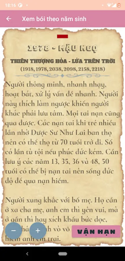 In the application of fortune-telling by year of birth, just enter the year of birth, you can see basic information about a person's characteristics and life.