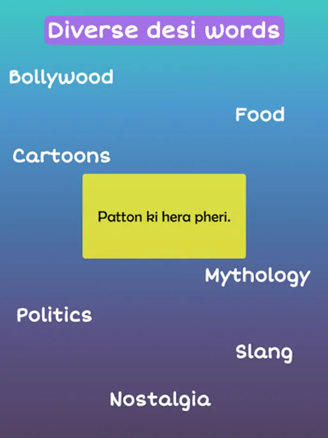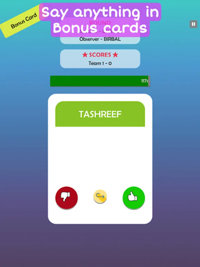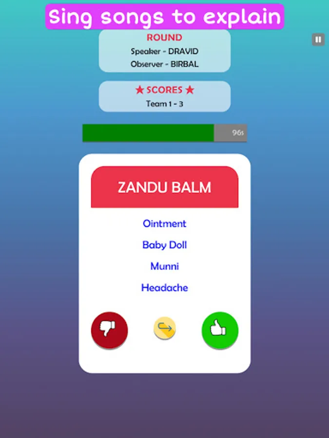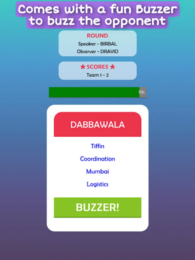 3. Being a bilingual game, words may be explained in Hindi or English, without translating any word on the card. Using synonyms of words on cards is allowed.