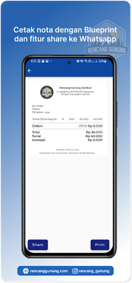 An application that makes it easy to manage Rancang Gunung Outdoor camping equipment rental POS.