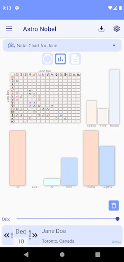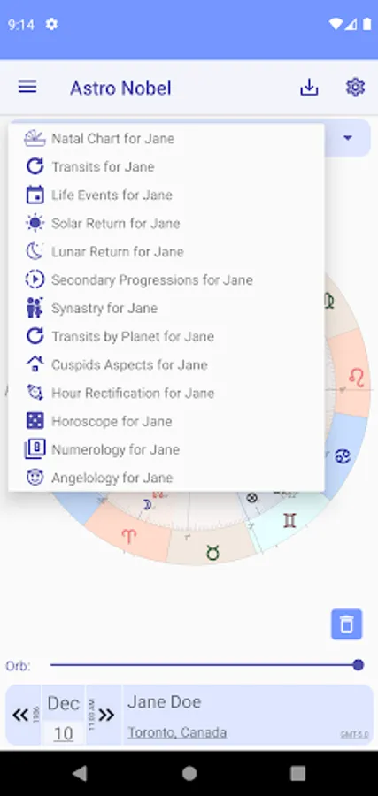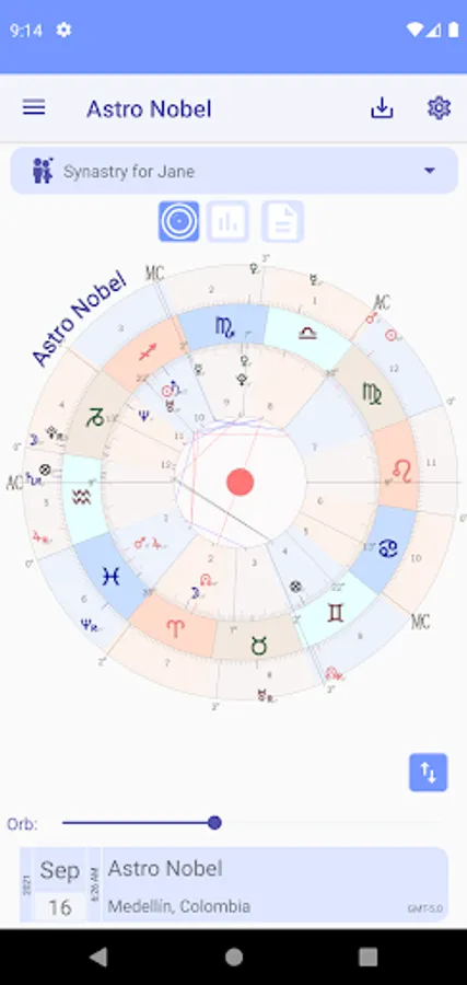With Astro Nobel you can access all your birth charts, and also those of family and friends. Includes Natal Chart, Transits, Solar and Lunar Return, Secondary Progressions and Synastries; You can also add the chart of any person's life event and access the transit dates of any planet in your natal chart.