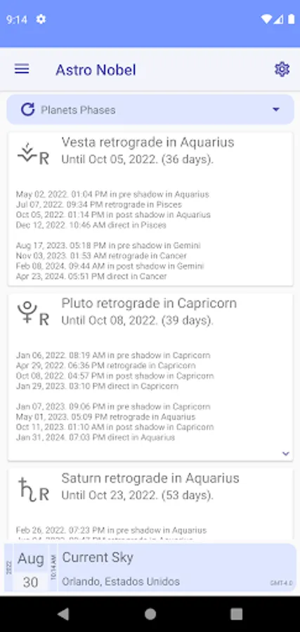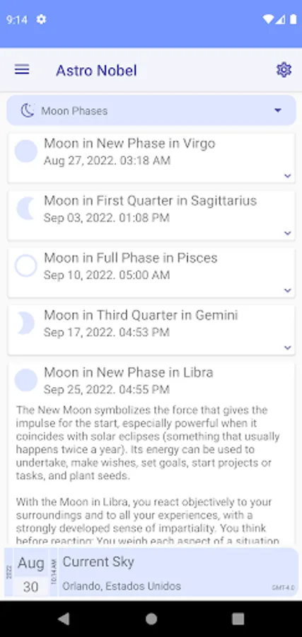 - There is a report with the next phases of the moon that includes the date, the sign and a description of the event.