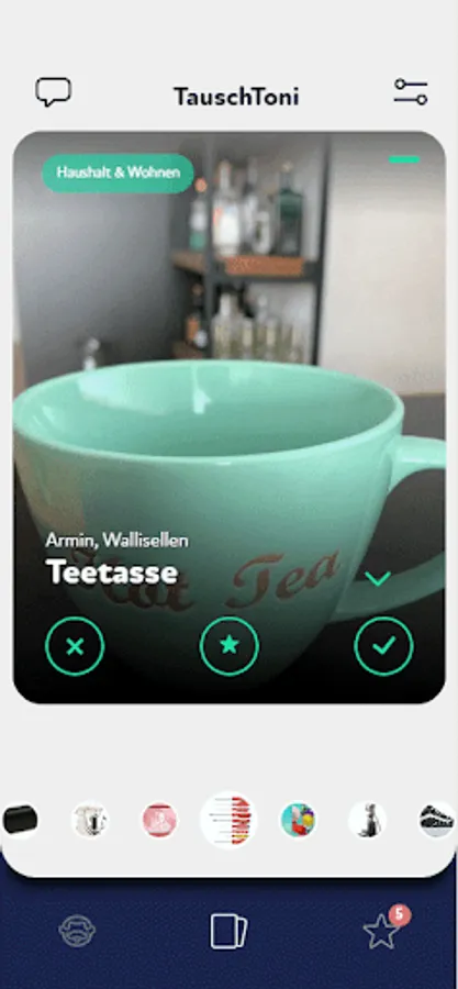 Just swap your things by swiping to the right if you want to swap. If not, swipe them to the left and flip to the next product. Actually just like the well-known dating app.