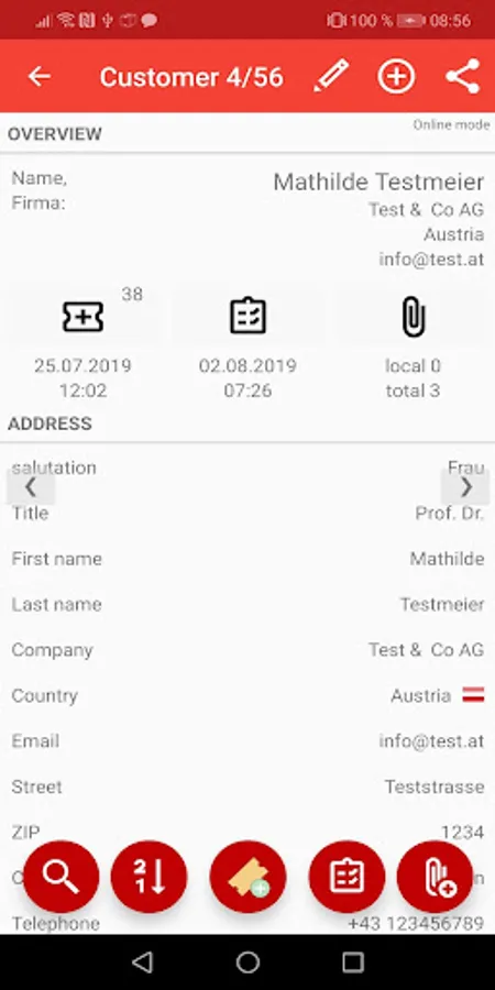 Multi user and online-offline modes are supported via built-in QR codes and every team works with their very own set of customer records. You can send instant mails to your customers and always request reports via email as XLSX files to work with. The mail templates can be customized.