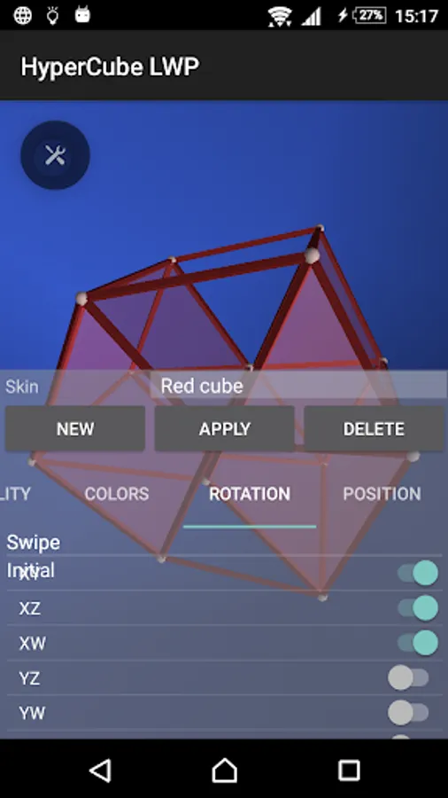 Hypercube aka tesseract is four-dimensional object. It's projection in three-dimensional space looks very beutifil and shows many fantastic transformations.