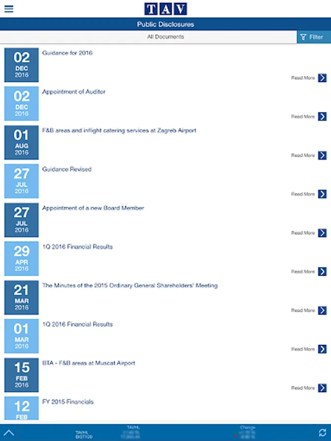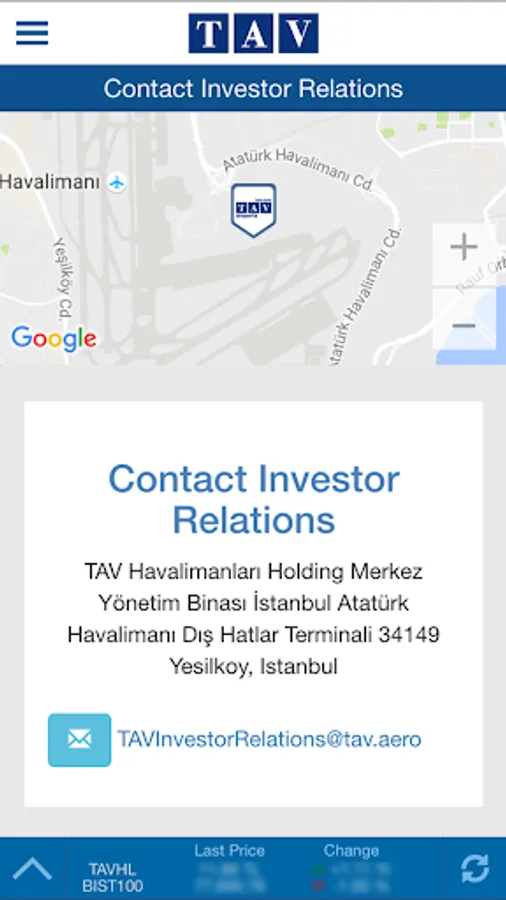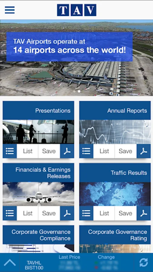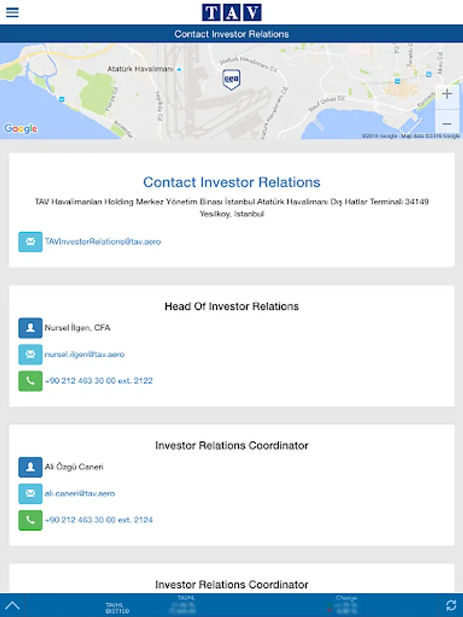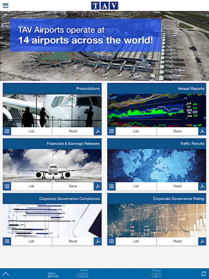 TAV Airports Investor Relations Application provides you with a comprehensive set of financial and operational information about TAV Airports both in Turkish and in English. The Application will be updated in real time as new disclosure, data and documents become available at the Investor Relations Website: http://www.tavyatirimciiliskileri.com/