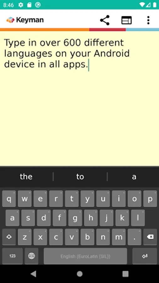 Keyman makes it easy to type in over 1,700 different languages on your Android phone or tablet! You can post your messages to Twitter or email or message them, and communicate directly in your own language!