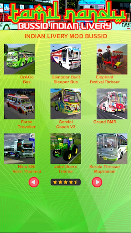 Yah eplikeshan kaee naveenatam aur sabase achchhe bussid indian vehicle mod mod modal pradaan karata hai. sabase prasiddh vibhinn modalon ke saath bussid tamilnadu livery poshaak sangrah hai. kaee tamil basen hain jinhen aap chun sakate hain, jaise ki bussid tamil nadu private bus jo adviteey aur shaanadaar hain. naveenatam bussid tamil nadu livery tnstc bhee hai. hamaare paas ek busid komban bus mod sangrah bhee hai. aap is eplikeshan mein komban mod for bussid ke saath-saath jaanana chaahate hain ki adviteey aur shaant busid mod komban bas kaisee dikhatee hai? is eplikeshan mein bussid komban mod kee jaanch karen.