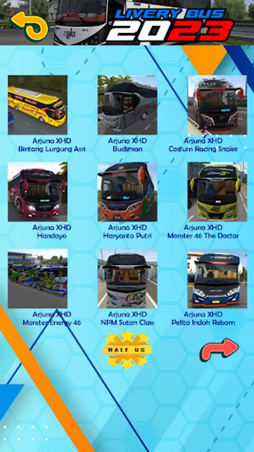 This application is a livery app that provides various kinds of livery busid updates for the latest bussid. With more than 50 choices of the coolest bussid bus livery starting from full strobe bussid livery with the most excited strobe lights. Then the bussid tourism mod full of dolls that adorn the windshield and also the original bussid bus livery which is much sought after. With the latest 2023 bussid livery you can enjoy a driving experience with a different style every day.