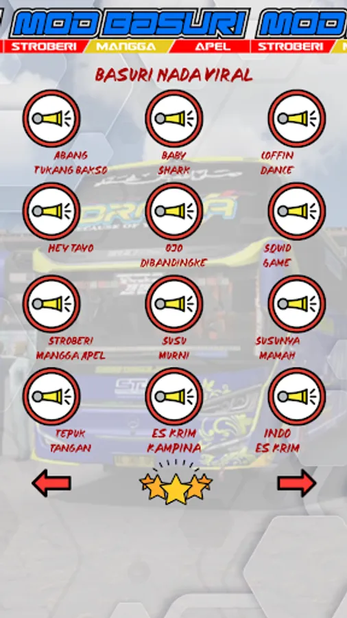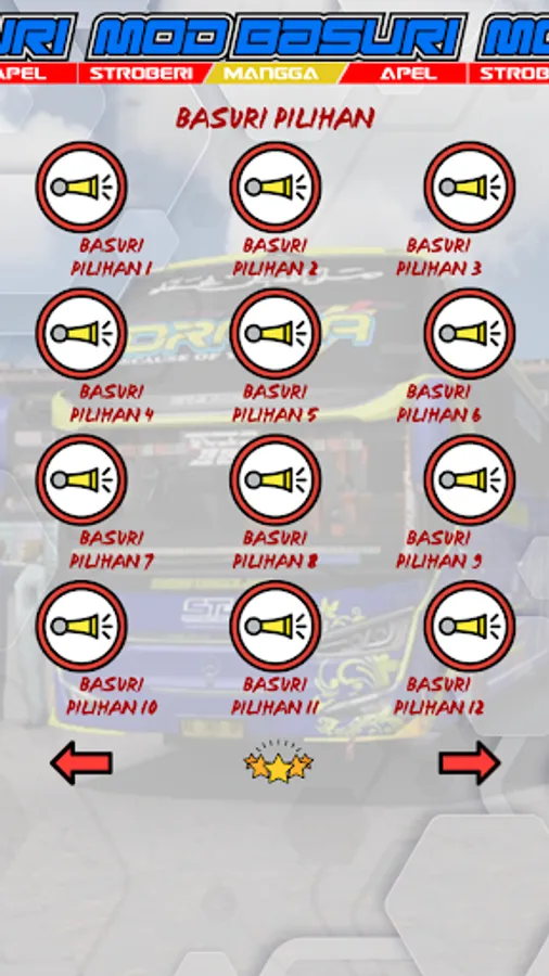 Welcome to Telolet Basuri Strawberry Mango Apple Bussid, the application that provides the latest collection of Indonesian bussid horns. By installing this bussid basuri application, you can add various interesting and unique bus basuri horn sounds to enhance your playing experience.