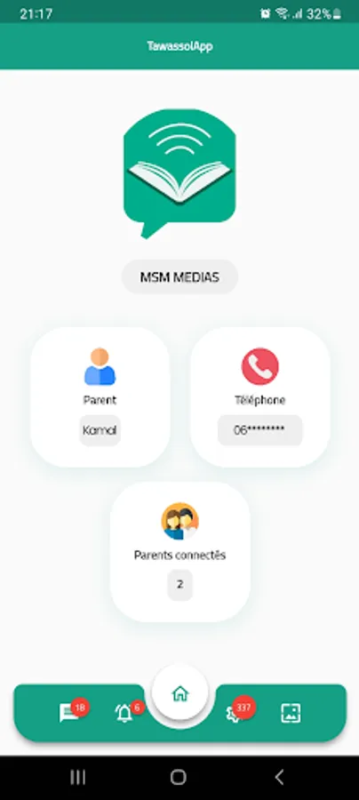This application is a digital communication tool oriented from the Establishment to the parents.