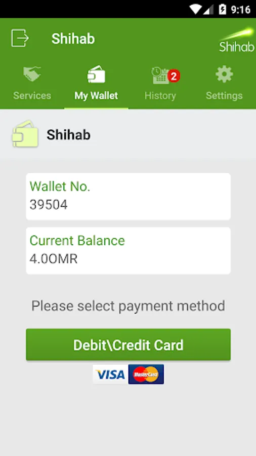 Load funds to your Shihab Wallet by using your payment card to top-up your wallet .