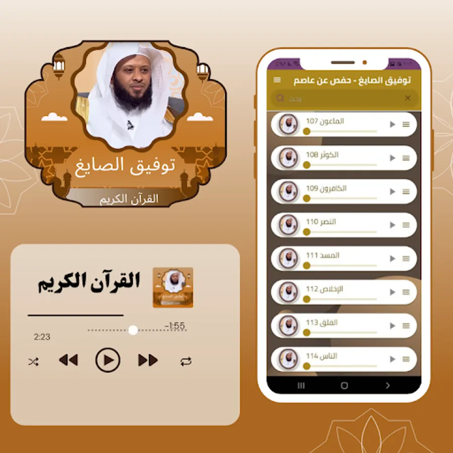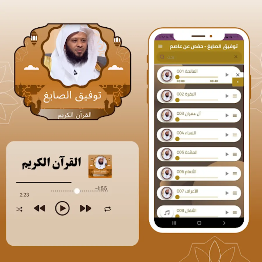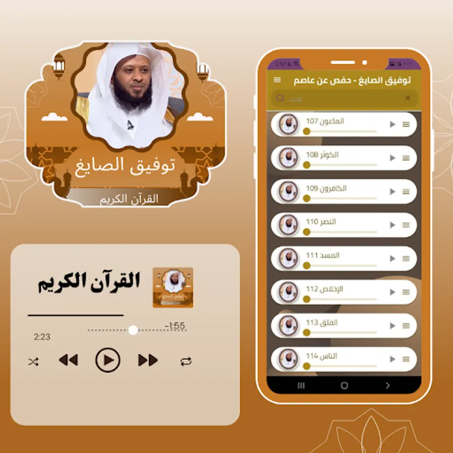 Do not hesitate and download the application now and listen to the most beautiful voices and recitations of the Holy Quran with the application of Sheikh Tawfiq Al-Sayegh.
