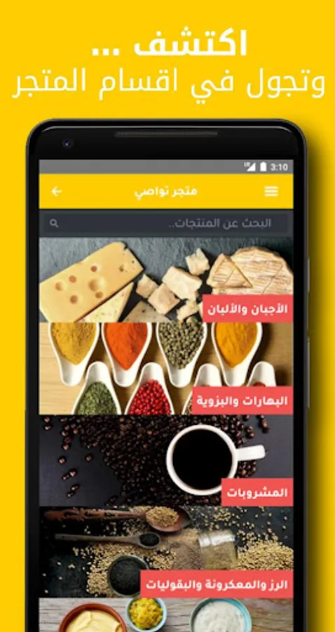 Shop through the Tawassi app and navigate the store's corridors ... to find and discover many products of many different varieties ..