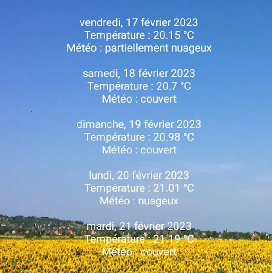 The Weather Dakar application provides weather forecasts for the city of Dakar, Senegal, for the next 5 days.