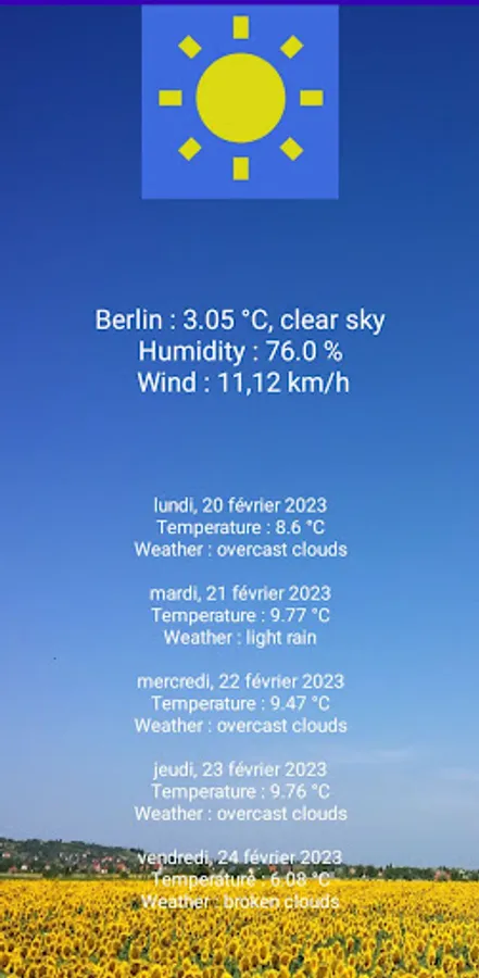 The Météo Berlin application provides weather forecasts for the city of Berlin, for the next 5 days.