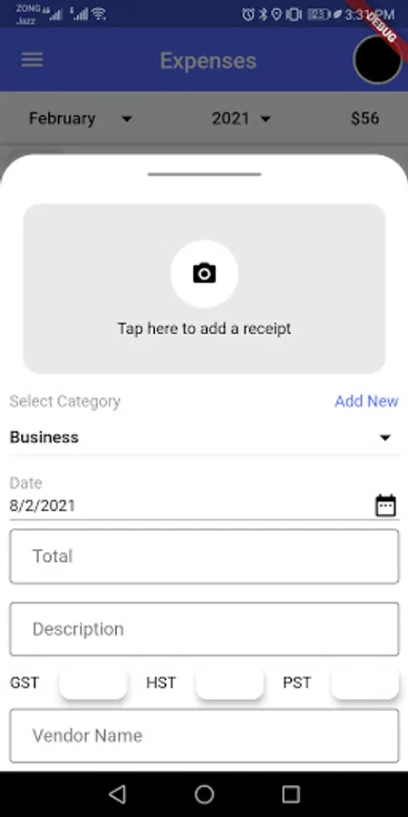 Snap pictures of receipts with your camera and input the amount and classify it. Expenses can be categorized as needed