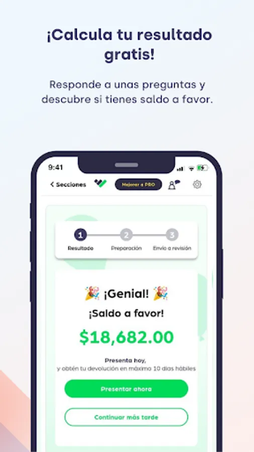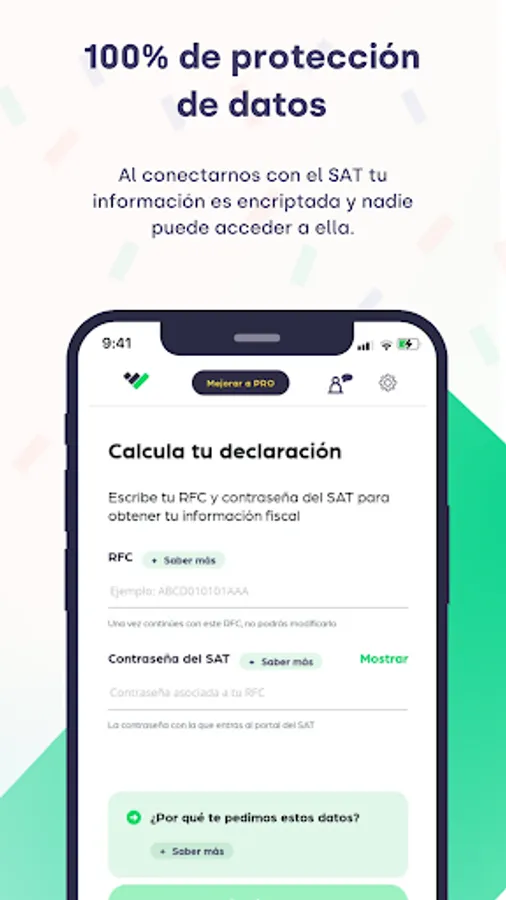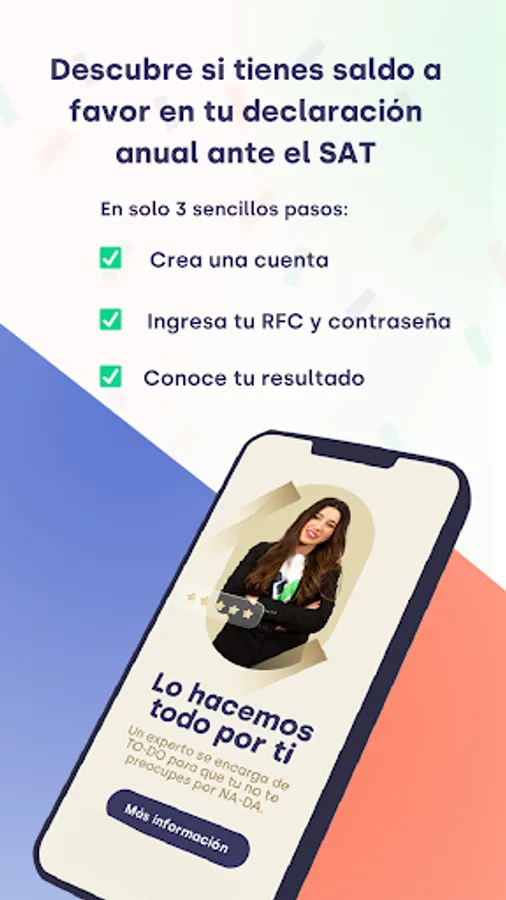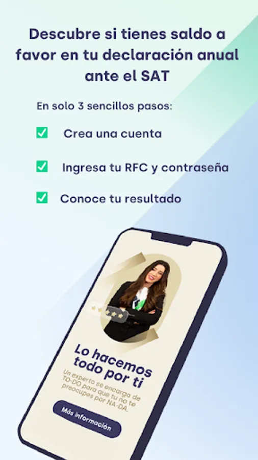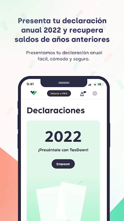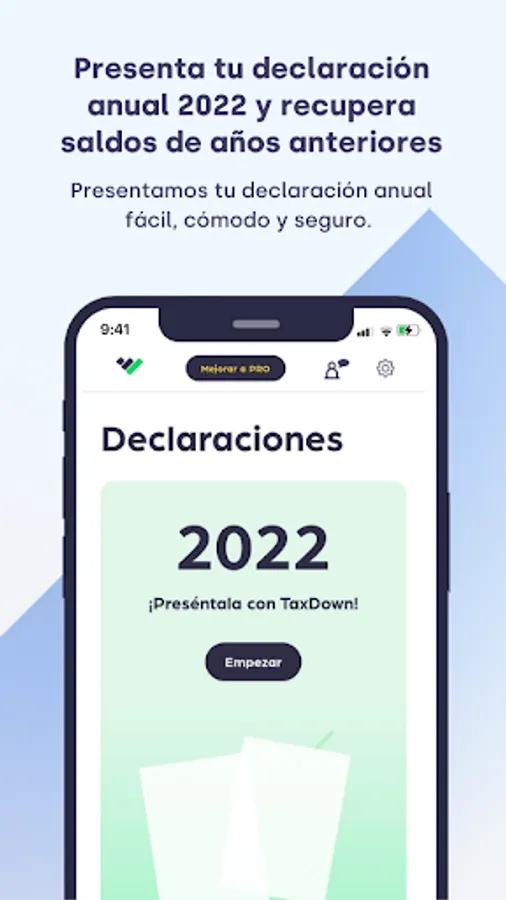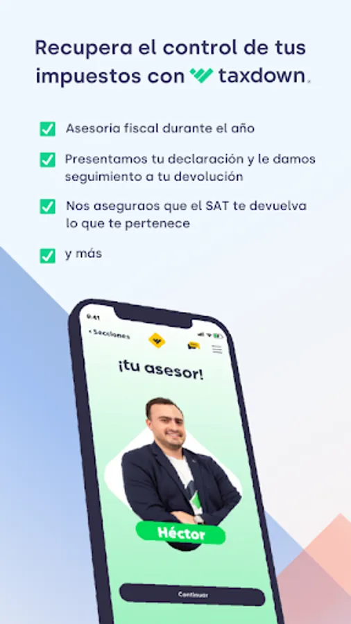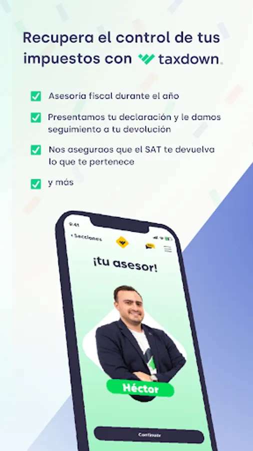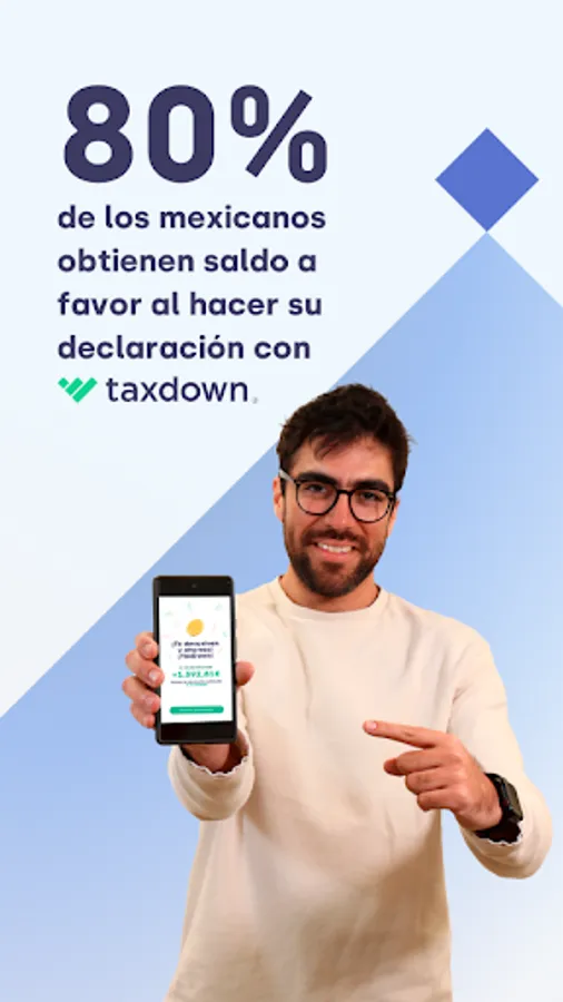 Taxdown is the leading application in Spain that has arrived in Mexico to help you regain control of your taxes, submitting your annual declaration to the SAT, in an easy, comfortable and secure way, always looking for the greatest benefit for you.
