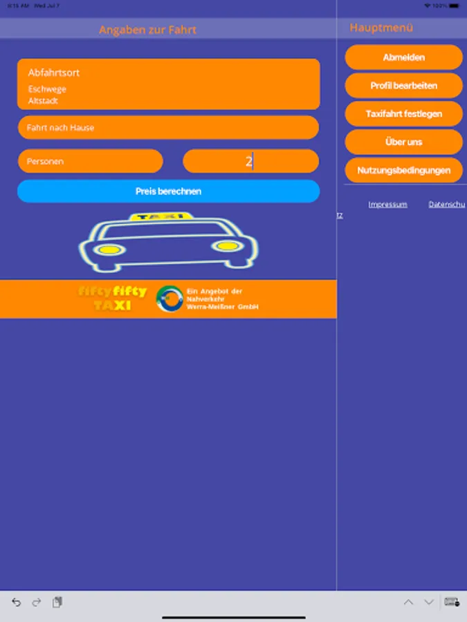 With the fifty-fifty taxi app, young people between the ages of 16 and 23 can get home from the pub, cinema or disco at half price. You must be resident in the Werra-Meißner district and have a valid identity card or passport. The fifty-fifty-TAXI runs from fixed locations in the Werra-Meißner district every Friday, Saturday and before public holidays between 10:00 p.m. and 6:00 a.m.